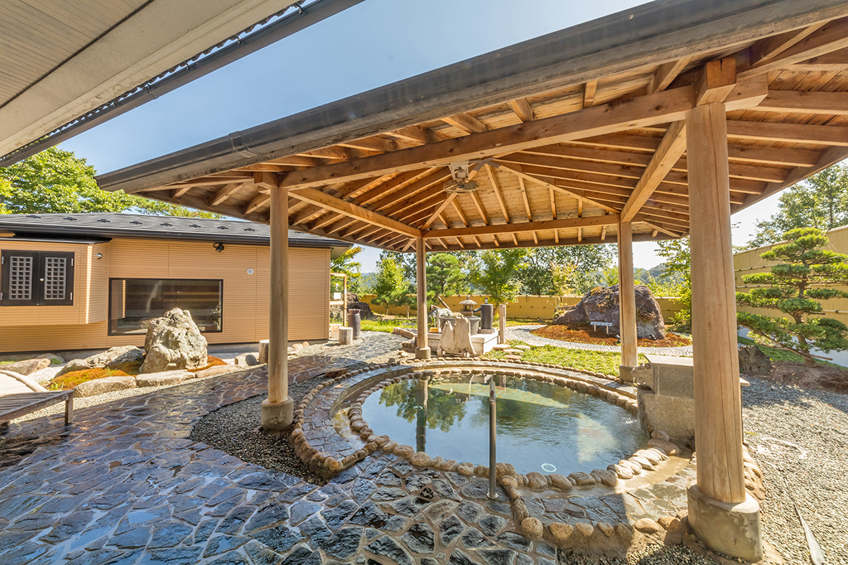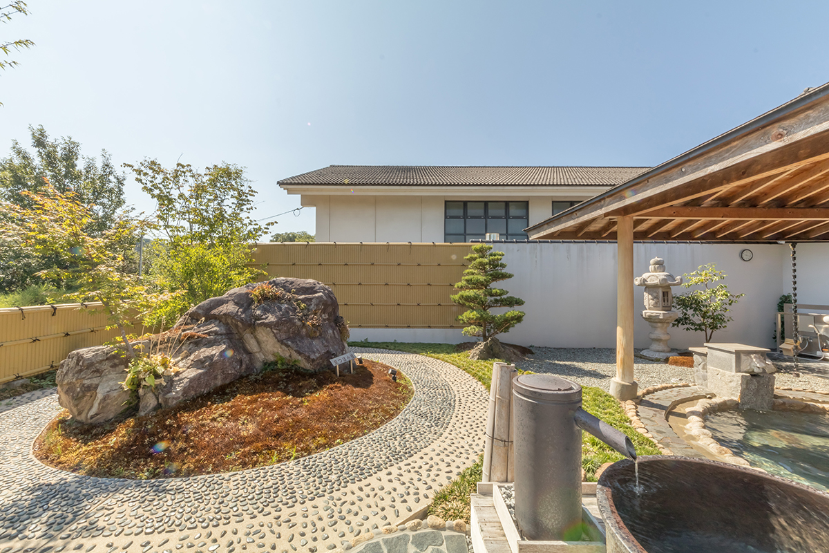 丹後の旧邸宅で使われていた石灯籠、自然石、花木を配した庭園を眺めながら露天風呂、サウナをお楽しみください。