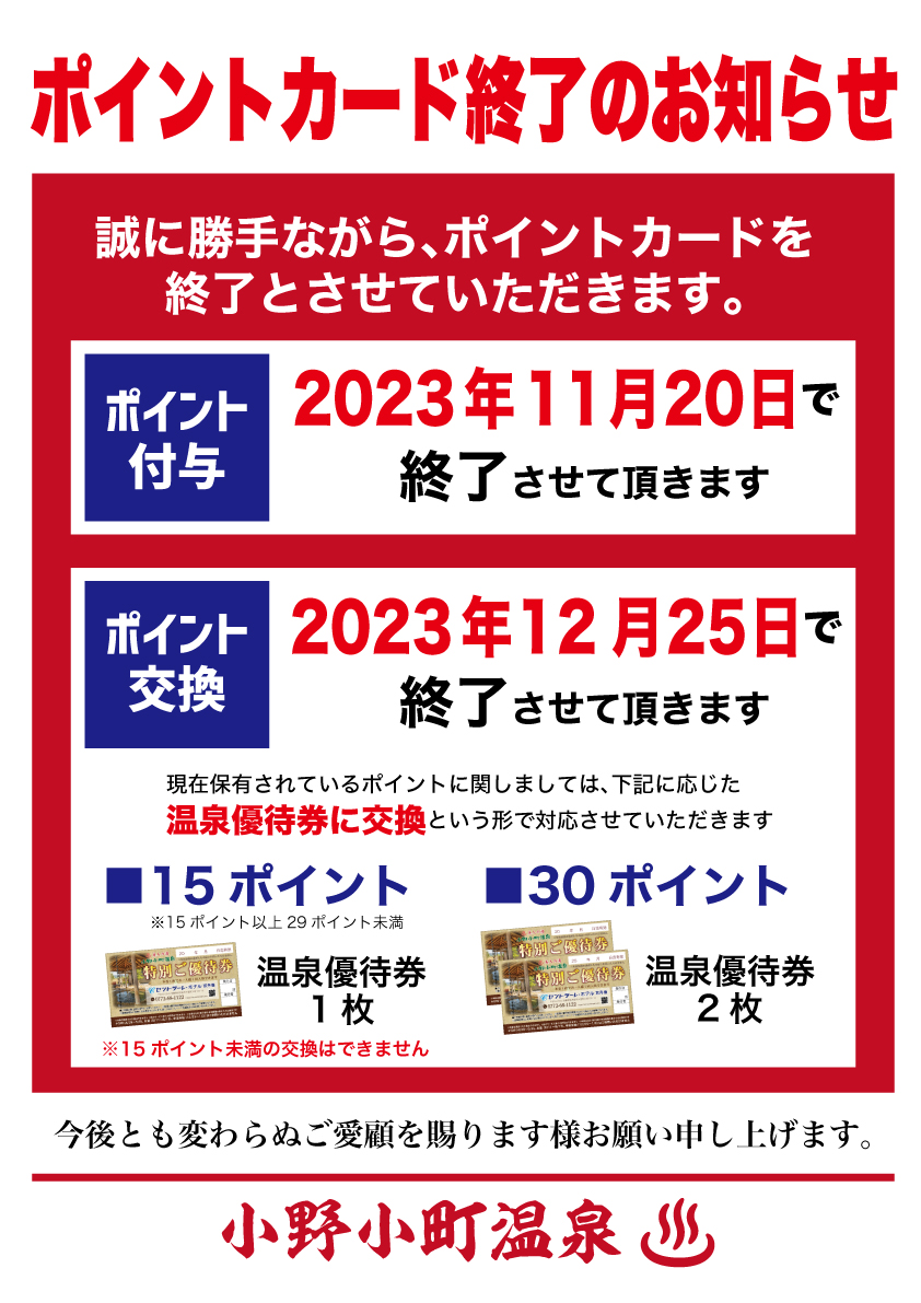 ポイントの交換は2023年12月25日まで、温泉優待券に交換させていただきます。